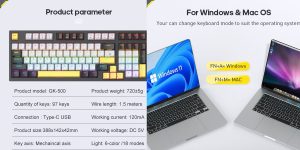 GK-500 uses a compact 97-key layout that keeps arrows and numpad for faster input and gaming. Choose Blue, Brown, Red, or Black switches to match your preferred feedback and actuation for office, coding, or esports.