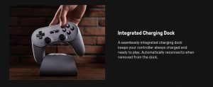 A seamlessly integrated dock keeps the pad charged and auto-reconnects when lifted. Linear/tactile trigger mode switch adapts to different genres. TMR high-precision sticks with 12-bit sampling deliver smooth aiming with improved durability.